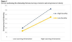 Hypothesis 4: The relationship between learning goal orientation and entrepreneurial identity will be moderated by rurality, such that the positive association will become stronger when rurality is high.