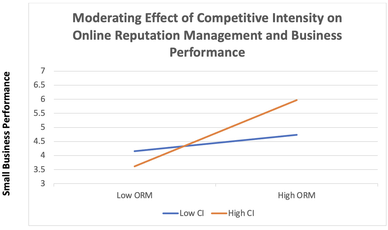 H5b: Competitive intensity positively moderates the relationship between online reputation management and small business performance.