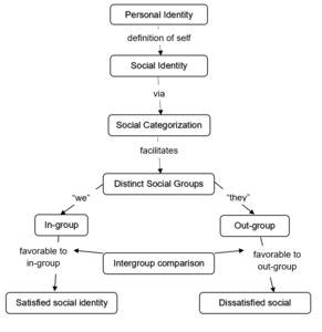 In Figure 1 (below), adapted from Tajfel and Turner’s 1979 work and replicated by Roman-Tamesis (2023), the SIT model is presented. This model illustrates how a personal identity contributes to an individual’s satisfaction or dissatisfaction with their social identity. Although this paper will not fully address satisfaction, this part of the model was included to illustrate the complete pathway. The paper will also not focus on personal identity.
