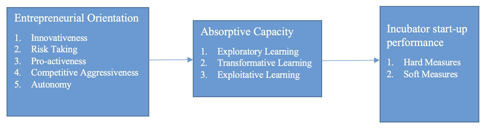 H3: ACAP significantly and positively mediates the relation between entrepreneurial orientation and incubator start-up performance.